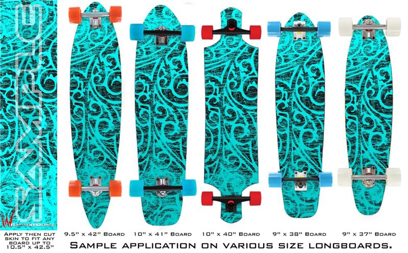 Our longboard skins are made so that one size fits boards up to 10” wide x 42” long. This means after applying the skin it you will trimming to fit you’re the shape of your board with a sharp utility knife.