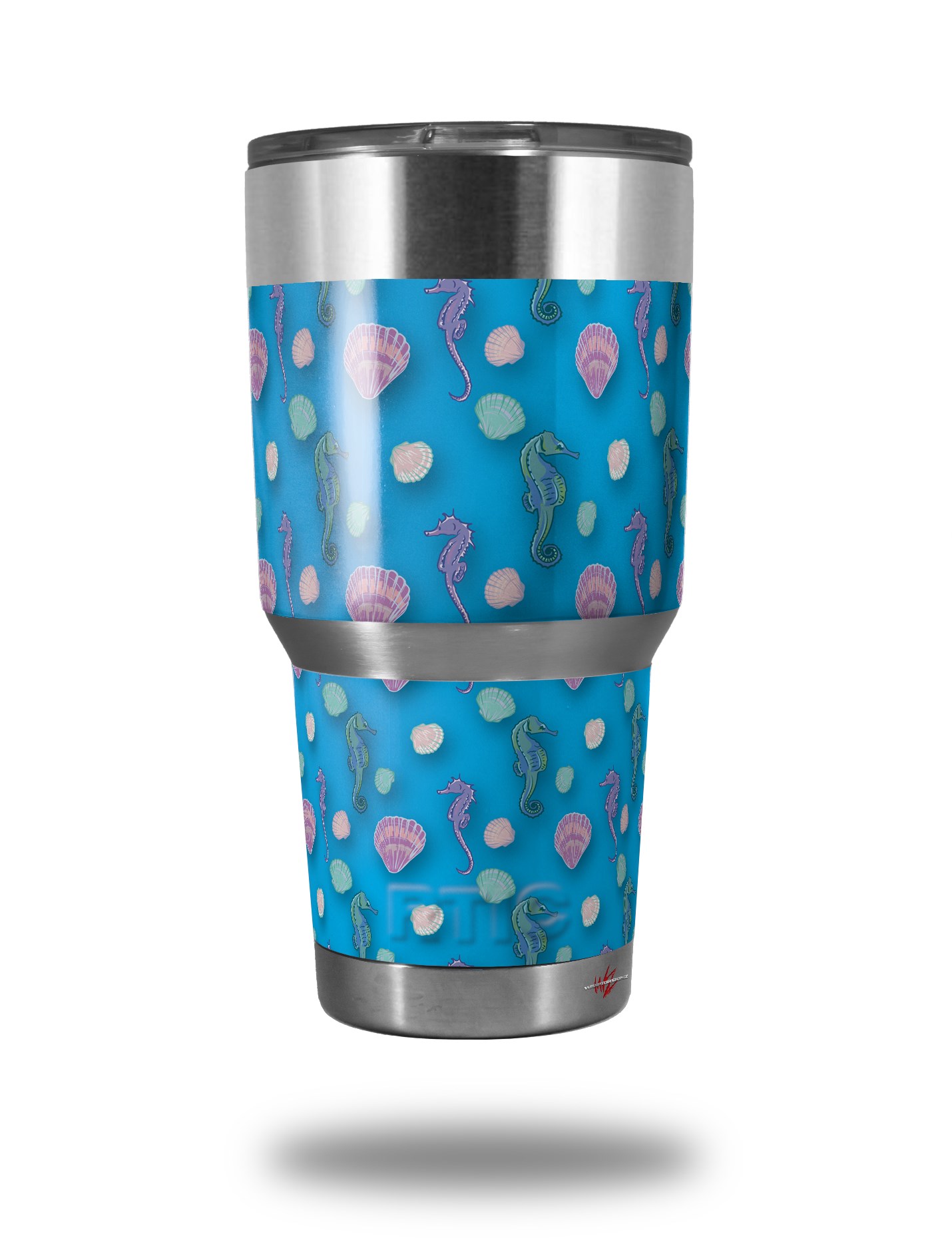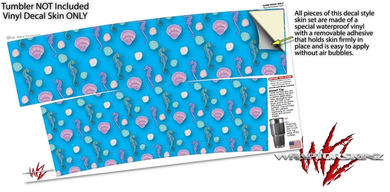 WraptorSkinz Skin Wrap compatible with RTIC 30oz ORIGINAL 2017 AND OLDER Tumblers Seahorses and Shells Blue Medium (TUMBLER NOT INCLUDED)