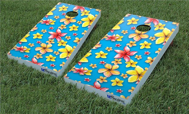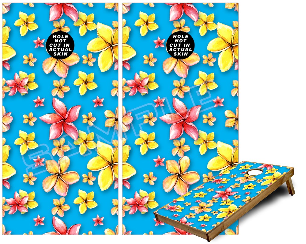 Cornhole Game Board Vinyl Skin Wrap Kit - Beach Flowers Blue Medium fits 24x48 game boards (GAMEBOARDS NOT INCLUDED)