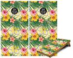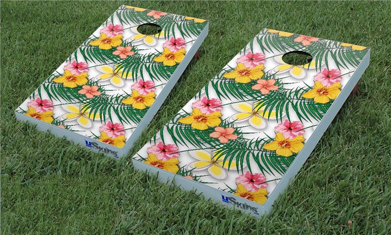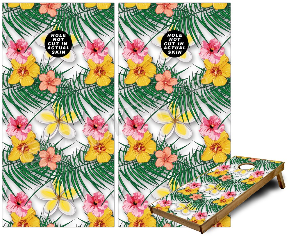 Cornhole Game Board Vinyl Skin Wrap Kit - Beach Flowers 02 White fits 24x48 game boards (GAMEBOARDS NOT INCLUDED)