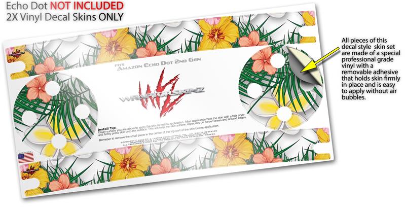 Skin Wrap Decal Set 2 Pack for Amazon Echo Dot 2 - Beach Flowers 02 White (2nd Generation ONLY - Echo NOT INCLUDED)