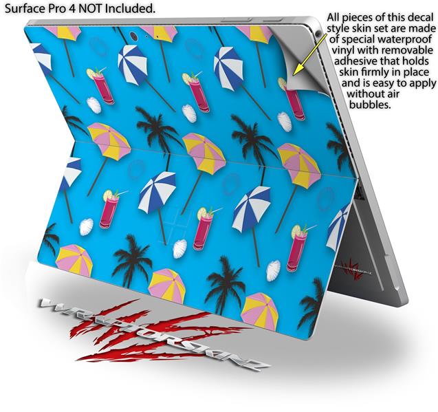 Beach Party Umbrellas Blue Medium - Decal Style Vinyl Skin fits Microsoft Surface Pro 4 (SURFACE NOT INCLUDED)