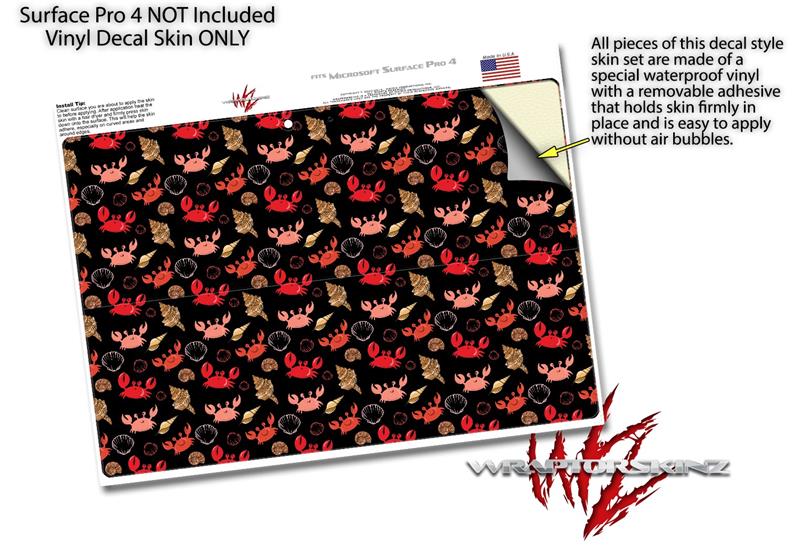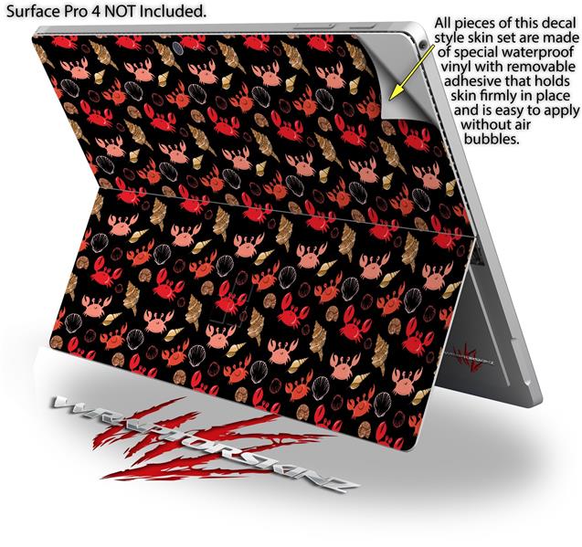 Crabs and Shells Black - Decal Style Vinyl Skin fits Microsoft Surface Pro 4 (SURFACE NOT INCLUDED)