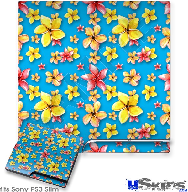 Decal Skin compatible with Sony PS3 Slim Beach Flowers Blue Medium