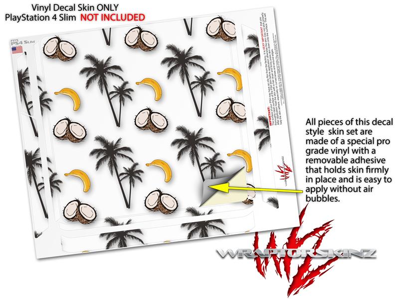 Vinyl Decal Skin Wrap compatible with Sony PlayStation 4 Slim Console Coconuts Palm Trees and Bananas White (PS4 NOT INCLUDED)