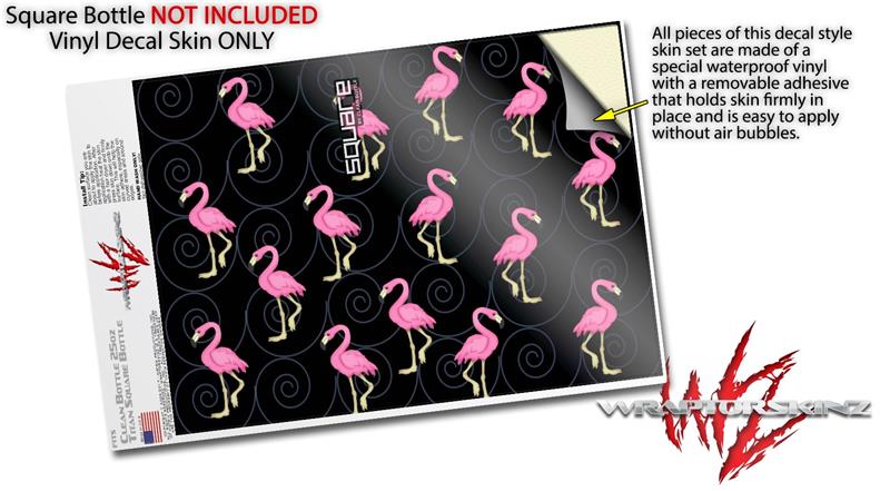 Skin Decal Wrap for Clean Bottle Square Titan Plastic 25oz Flamingos on Black (BOTTLE NOT INCLUDED)