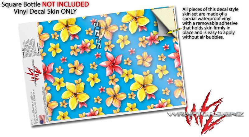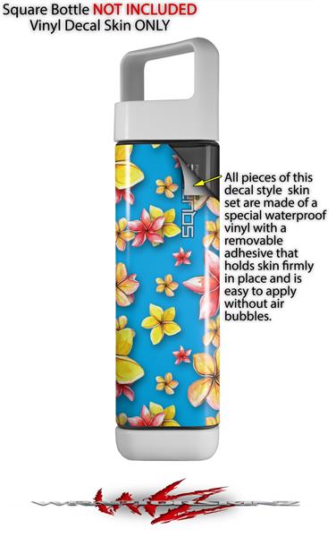 Skin Decal Wrap for Clean Bottle Square Titan Plastic 25oz Beach Flowers Blue Medium (BOTTLE NOT INCLUDED)