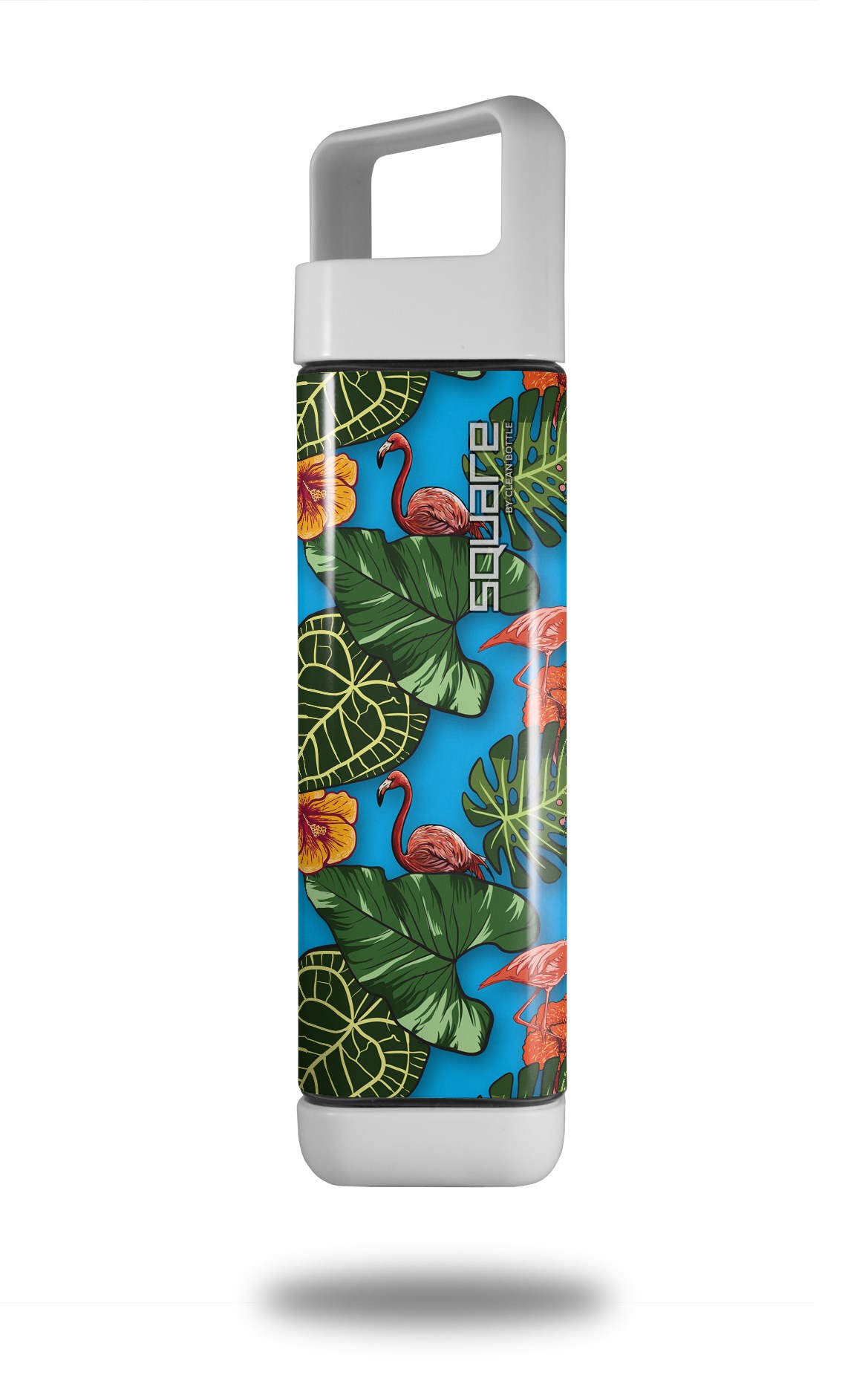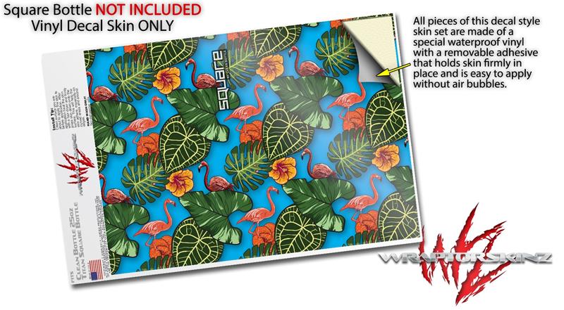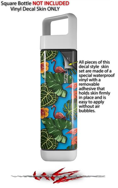Skin Decal Wrap for Clean Bottle Square Titan Plastic 25oz Famingos and Flowers Blue Medium (BOTTLE NOT INCLUDED)
