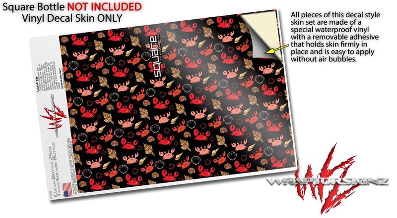 Skin Decal Wrap for Clean Bottle Square Titan Plastic 25oz Crabs and Shells Black (BOTTLE NOT INCLUDED)