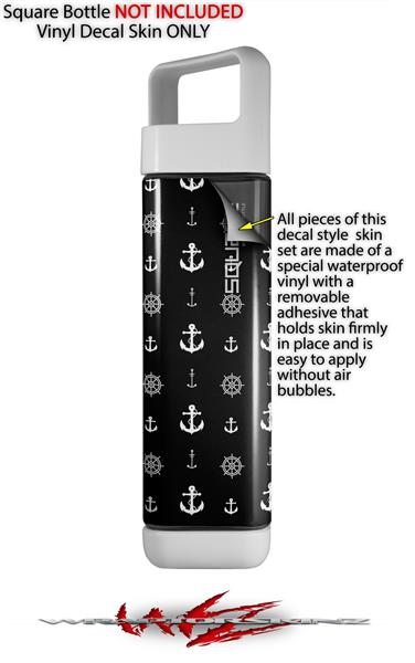 Skin Decal Wrap for Clean Bottle Square Titan Plastic 25oz Nautical Anchors Away 02 Black (BOTTLE NOT INCLUDED)