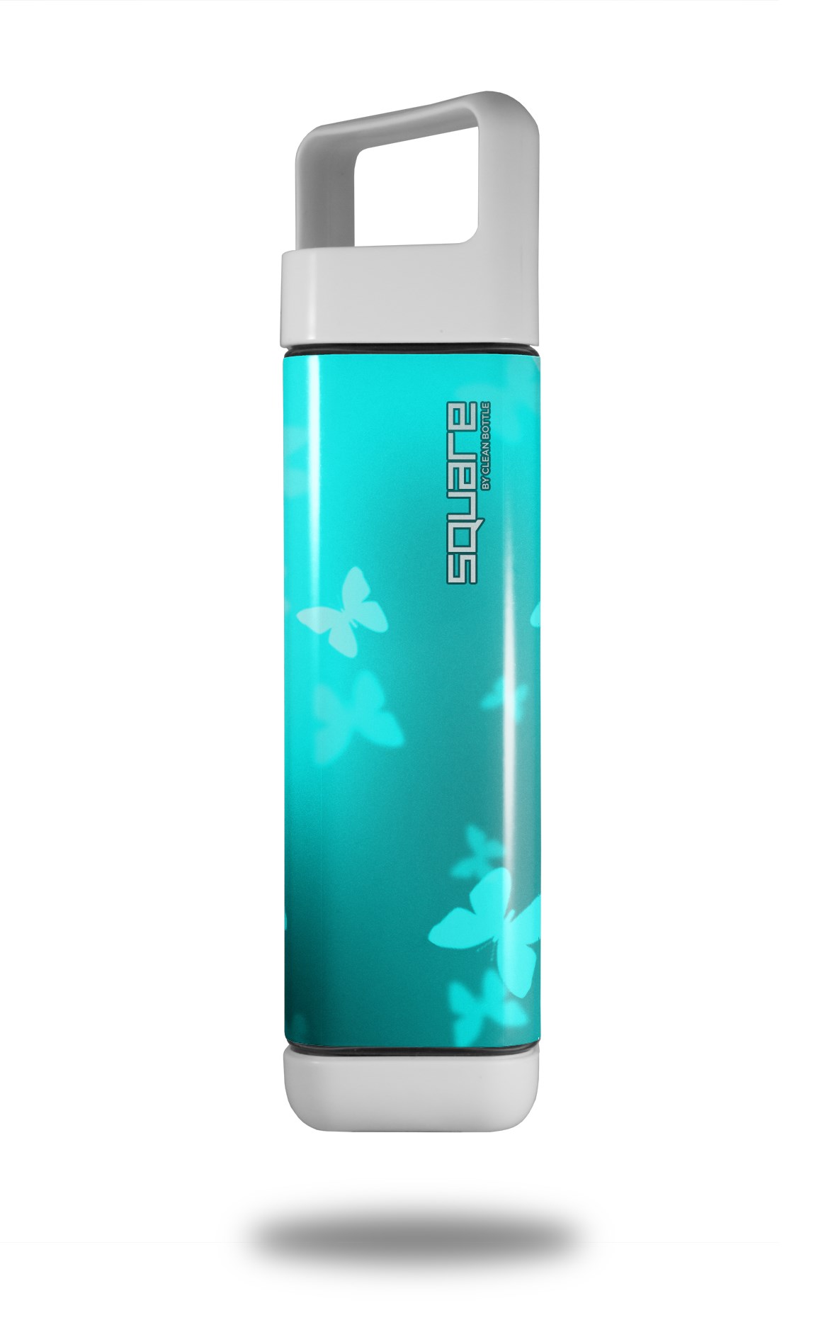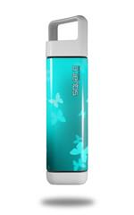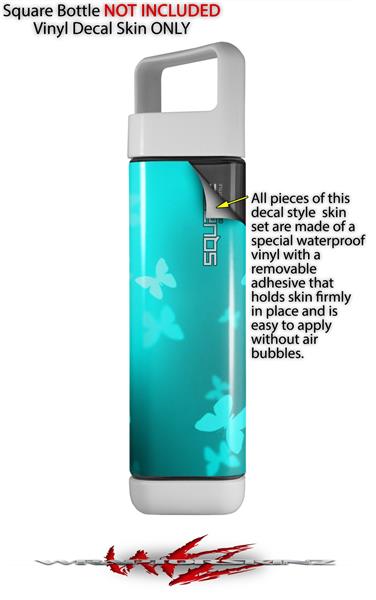 Skin Decal Wrap for Clean Bottle Square Titan Plastic 25oz Bokeh Butterflies Neon Teal (BOTTLE NOT INCLUDED)
