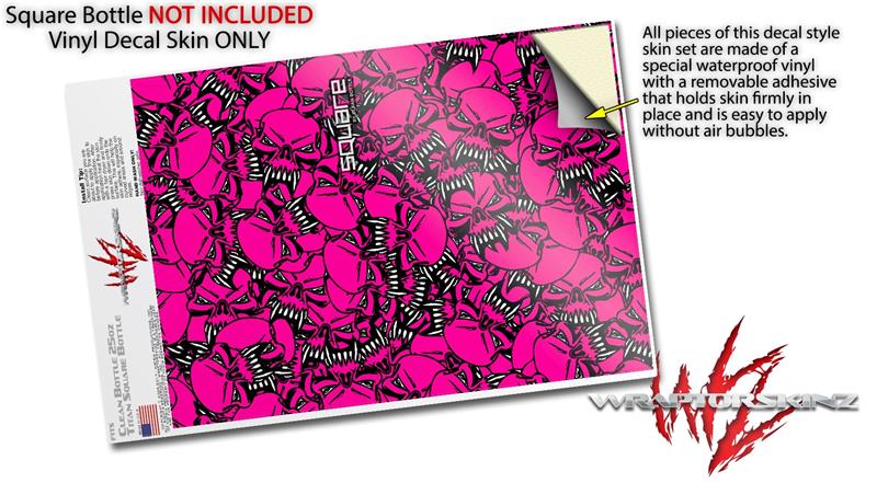 Skin Decal Wrap for Clean Bottle Square Titan Plastic 25oz Scattered Skulls Hot Pink (BOTTLE NOT INCLUDED)