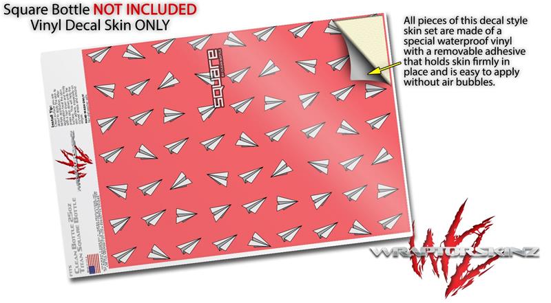 Skin Decal Wrap for Clean Bottle Square Titan Plastic 25oz Paper Planes Coral (BOTTLE NOT INCLUDED)