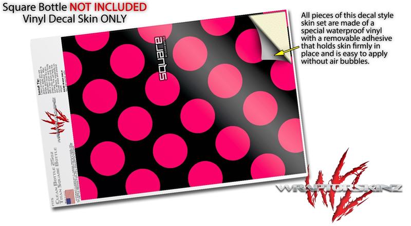 Skin Decal Wrap for Clean Bottle Square Titan Plastic 25oz Kearas Polka Dots Pink On Black (BOTTLE NOT INCLUDED)