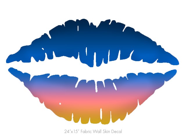 Smooth Fades Sunset - Kissing Lips Fabric Wall Skin Decal measures 24x15 inches