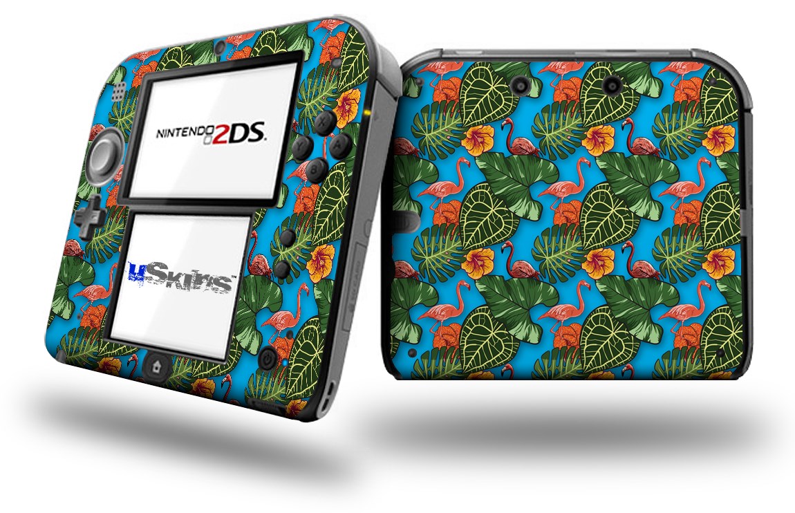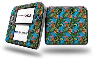 Famingos and Flowers Blue Medium - Decal Style Vinyl Skin fits Nintendo 2DS - 2DS NOT INCLUDED