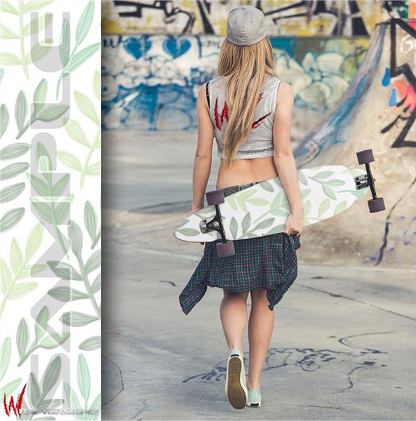Watercolor Leaves White - Decal Style Vinyl Wrap Skin fits Longboard Skateboards up to 10"x42" (LONGBOARD NOT INCLUDED)