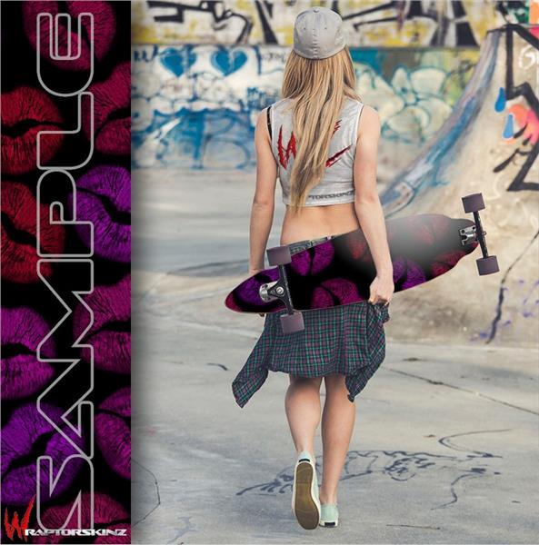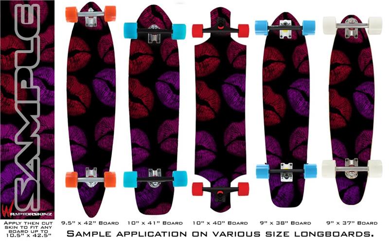 Red Pink And Black Lips - Decal Style Vinyl Wrap Skin fits Longboard Skateboards up to 10"x42" (LONGBOARD NOT INCLUDED)