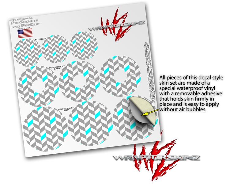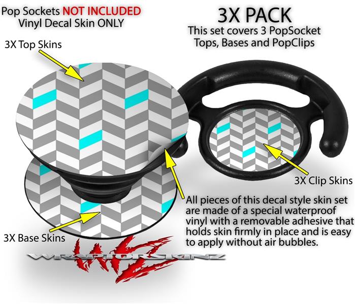 Decal Style Vinyl Skin Wrap 3 Pack for PopSockets Chevrons Gray And Aqua (POPSOCKET NOT INCLUDED)