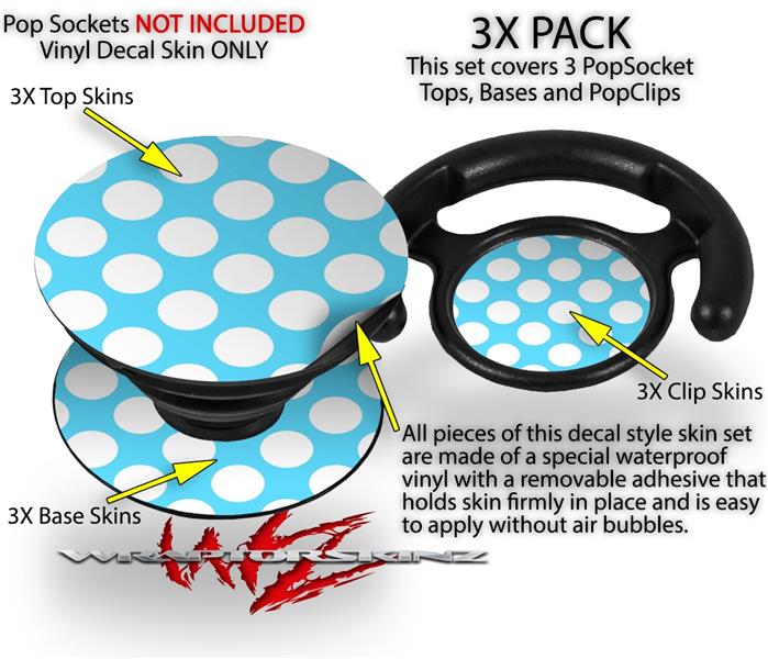 Decal Style Vinyl Skin Wrap 3 Pack for PopSockets Kearas Polka Dots White And Blue (POPSOCKET NOT INCLUDED)