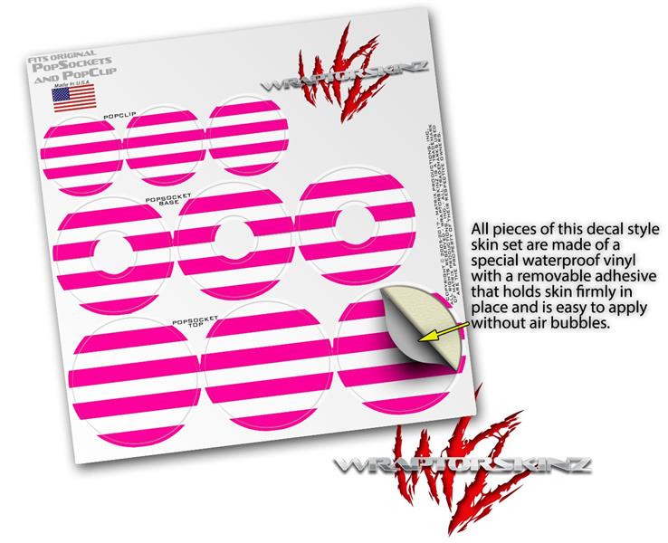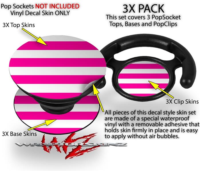 Decal Style Vinyl Skin Wrap 3 Pack for PopSockets Psycho Stripes Hot Pink and White (POPSOCKET NOT INCLUDED)