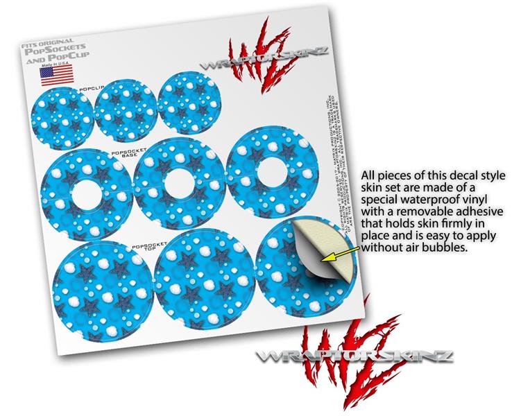 Decal Style Vinyl Skin Wrap 3 Pack for PopSockets Starfish and Sea Shells Blue Medium (POPSOCKET NOT INCLUDED)