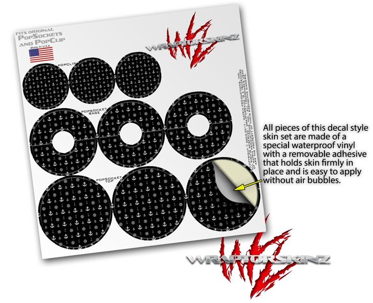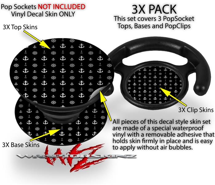 Decal Style Vinyl Skin Wrap 3 Pack for PopSockets Nautical Anchors Away 02 Black (POPSOCKET NOT INCLUDED)