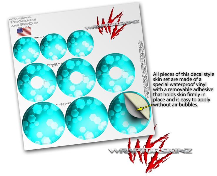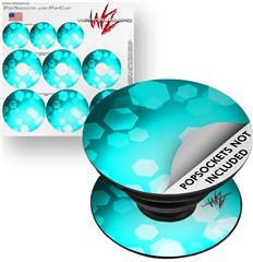Decal Style Vinyl Skin Wrap 3 Pack for PopSockets Bokeh Hex Neon Teal (POPSOCKET NOT INCLUDED)