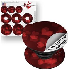 Decal Style Vinyl Skin Wrap 3 Pack for PopSockets Bokeh Hearts Red (POPSOCKET NOT INCLUDED)