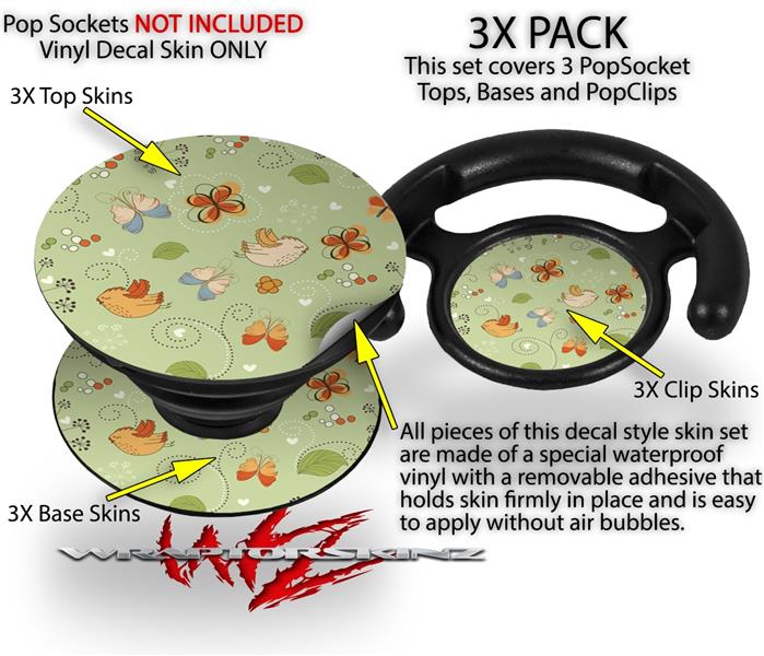 Decal Style Vinyl Skin Wrap 3 Pack for PopSockets Birds Butterflies and Flowers (POPSOCKET NOT INCLUDED)