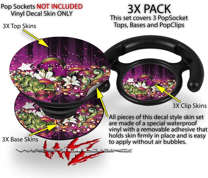 Decal Style Vinyl Skin Wrap 3 Pack for PopSockets Grungy Flower Bouquet (POPSOCKET NOT INCLUDED)
